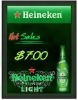 Led writing board with light box Features: - A kind of fashionable new Led advertising writing board combines Light Box; - Size is 11”*18” by customer design; - Printing your logo or logo sticker on the upper board; - Insert a picture between frame and board or drawing something with a fluorescence pen on the board directly; - Open the frame you can change picture easy with 4pcs advertising. Screws; - Low power consumption, fire-resistant, portable & low; - Application: Bars, cafes, clubs, restaurants, supermarkets, hotels, exhibition halls, entertainment, as promotion gift, etc. Spare parts you can choose from below: - Tripod supporting: imitative wooden & Alloy material; - Mark: There are 8 colors for choose, (Blue/ Yellow/ Green/ Purple/ Red/ White/ Pink/ Orange) - Remote Control: on/off, flashing, 7-color changing automatic.